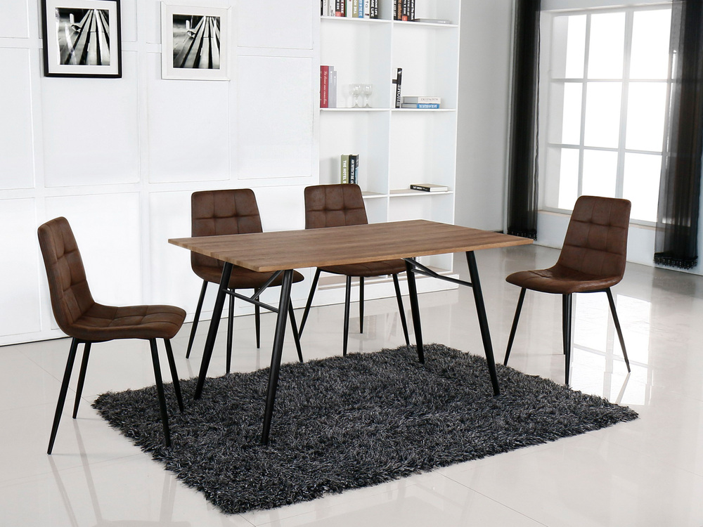 Ensemble table de repas (140x80x75 cm) et 4 chaises (44x88x41 cm).