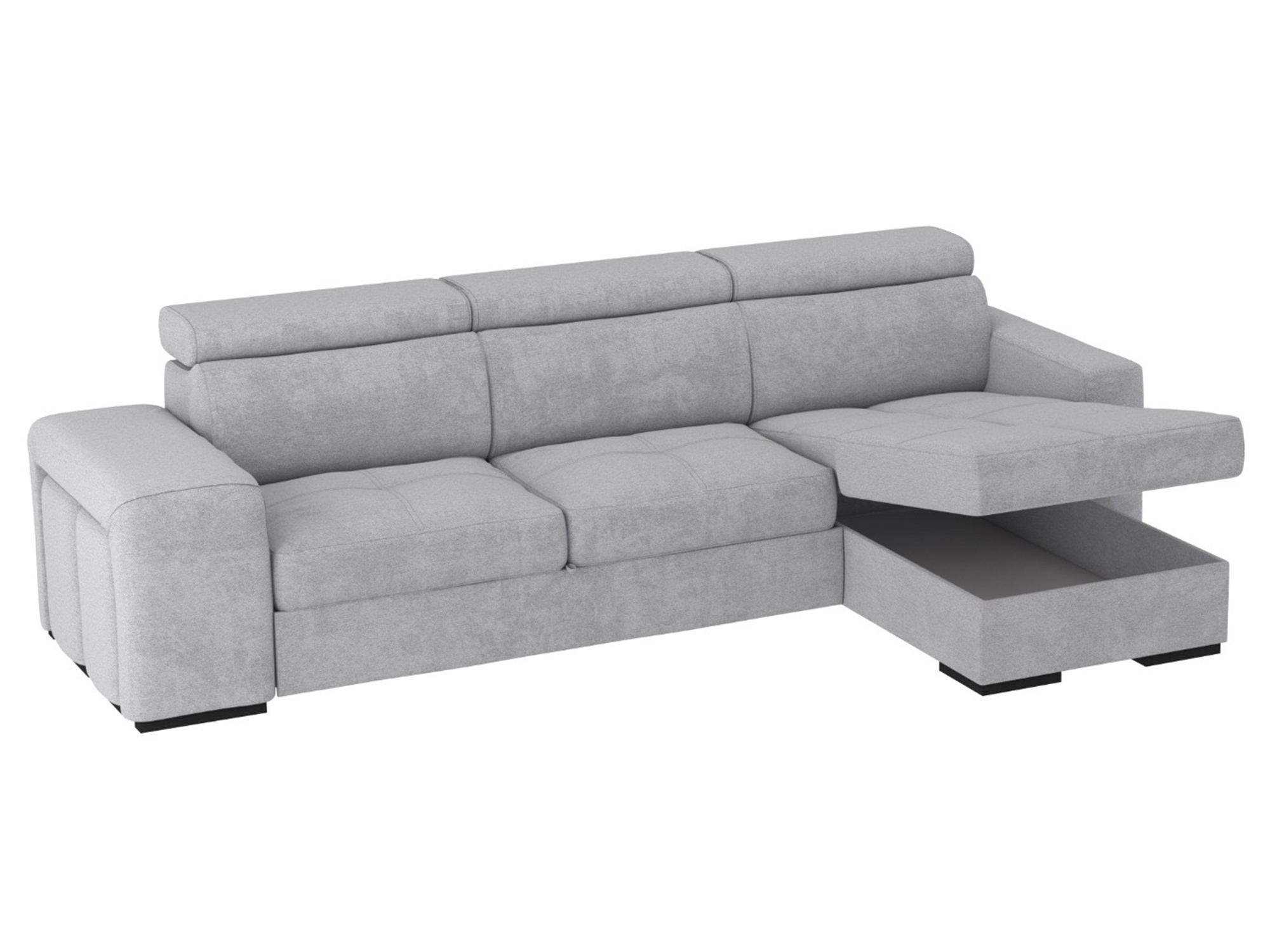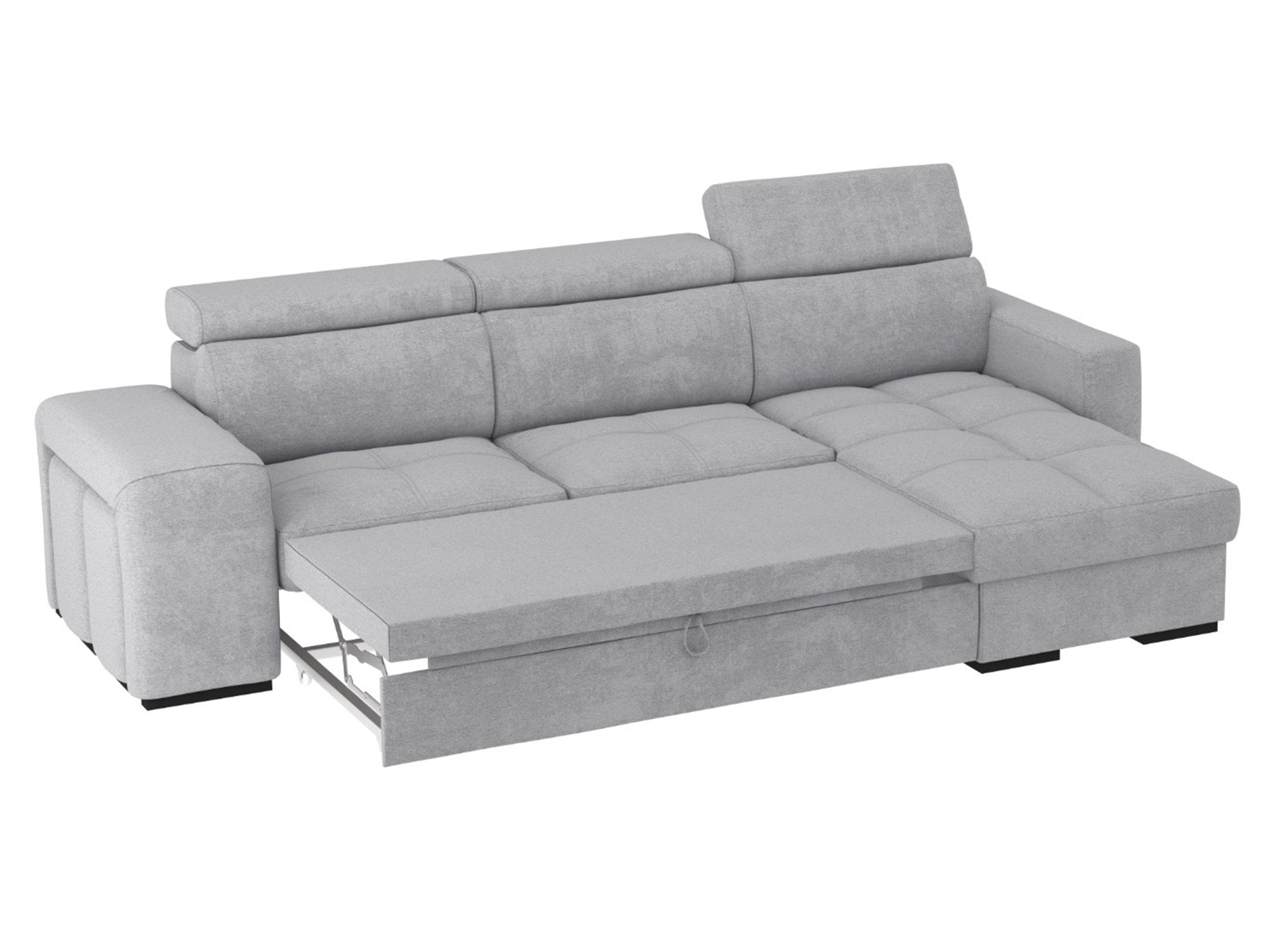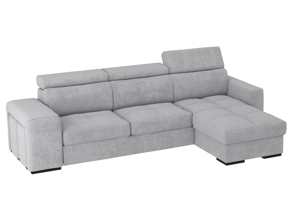 Salon d'angle réversible avec tétières et 2 poufs sur le coté.