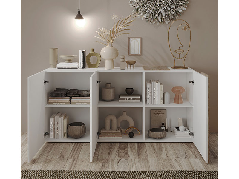 Bahut 3 portes Venus blanc brillant/chene cadiz
