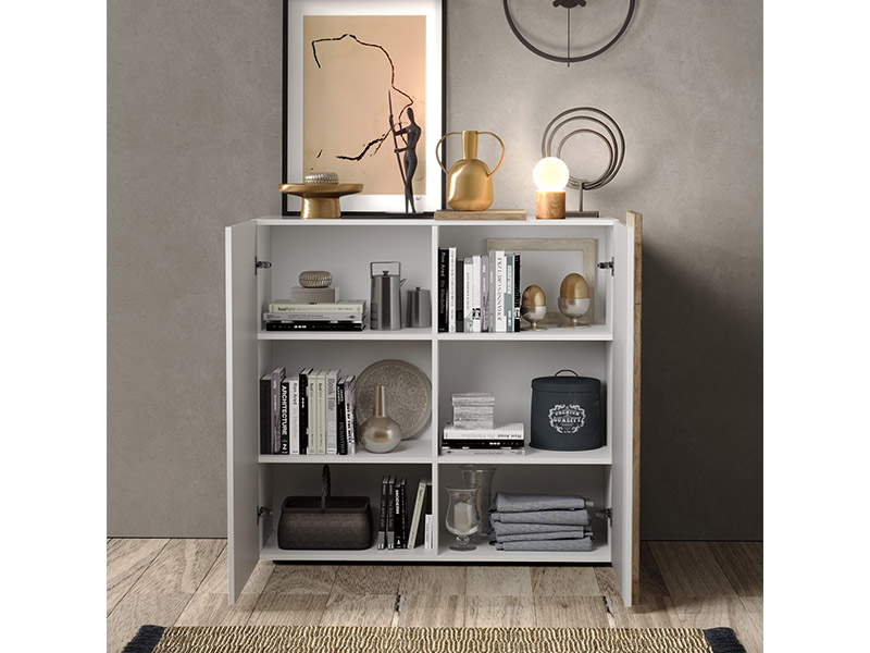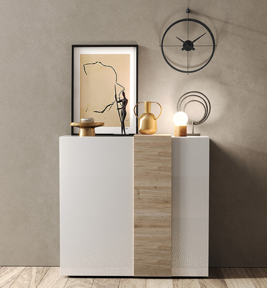 Meuble 2 portes Venus blanc brillant/chene cadiz