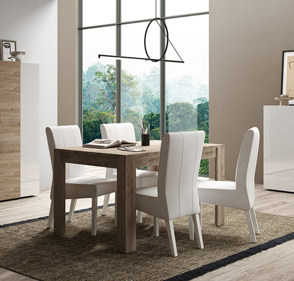 Table de repas fixe Venus blanc brillant/chene cadiz