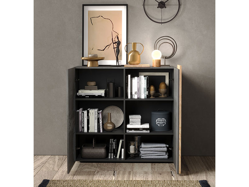 Meuble 2 portes Venus gris graphite/chene kadiz