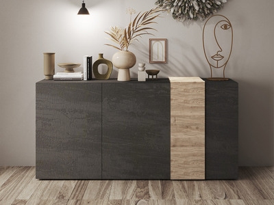 Structure et façades en aggloméré de bois épaisseur 16 mm.Bandes sur les façades/portes épaisseur 22 mm.