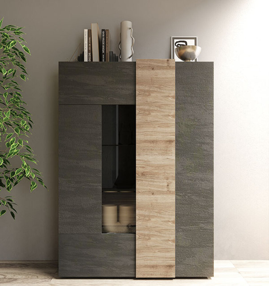Épaisseur étagères en bois 16 mm.Porte en verre tempéré épaisseur 3 mm.Épaisseur étagères en verre 5 mm.
