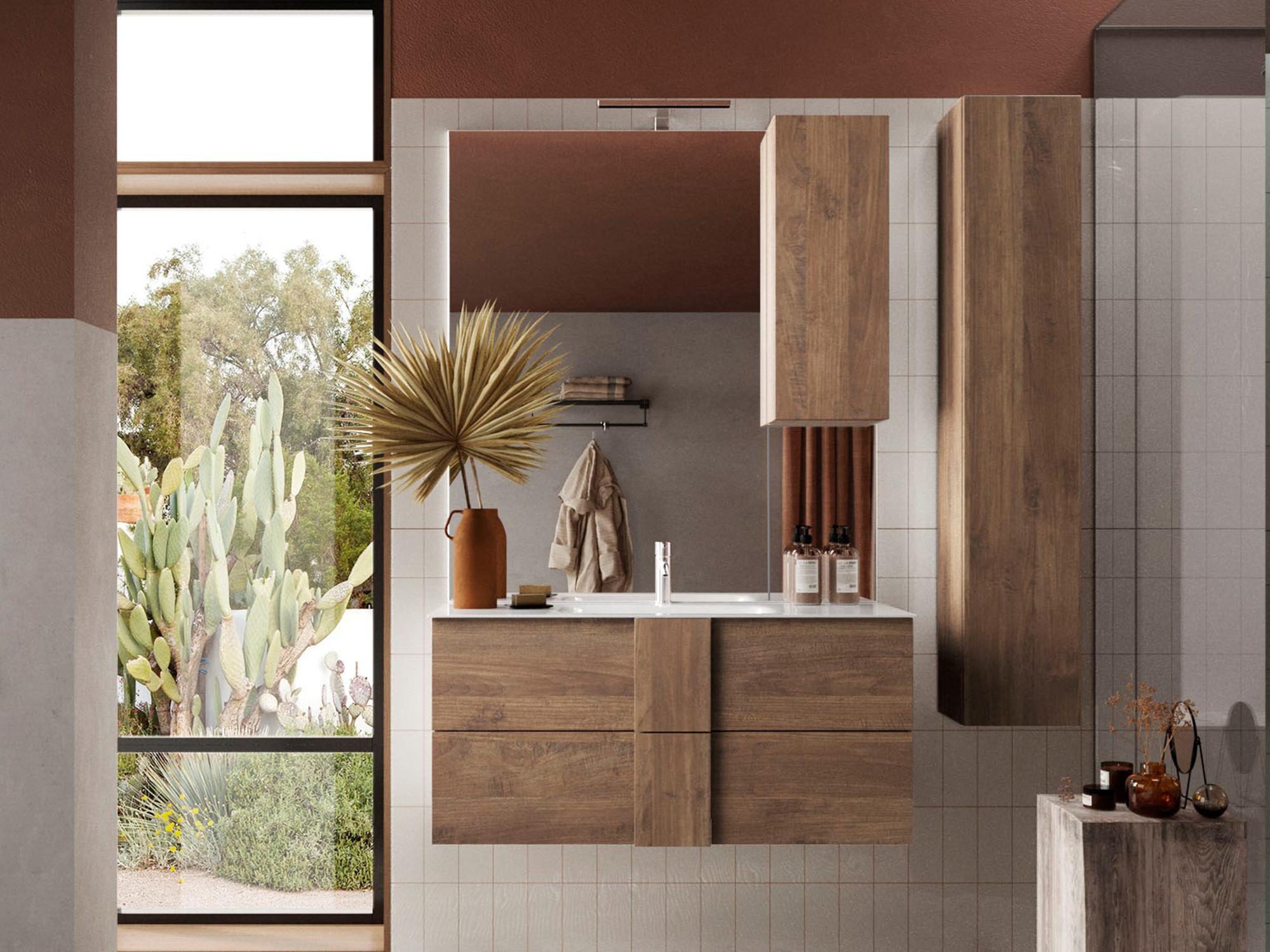 Panneaux de particules revetus de décor imitation chene mercure.Siphon non inclus.