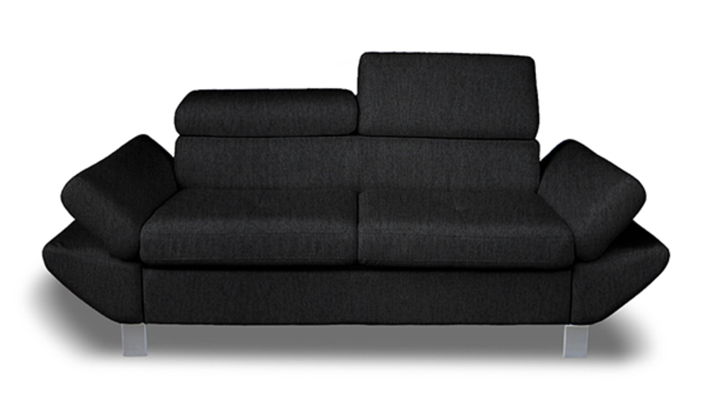 Canapé fixe 2 places avec accoudoirs et tétières réglables de 75 à 92 cm.