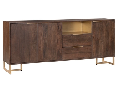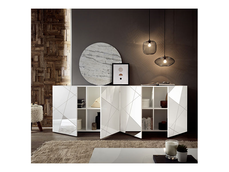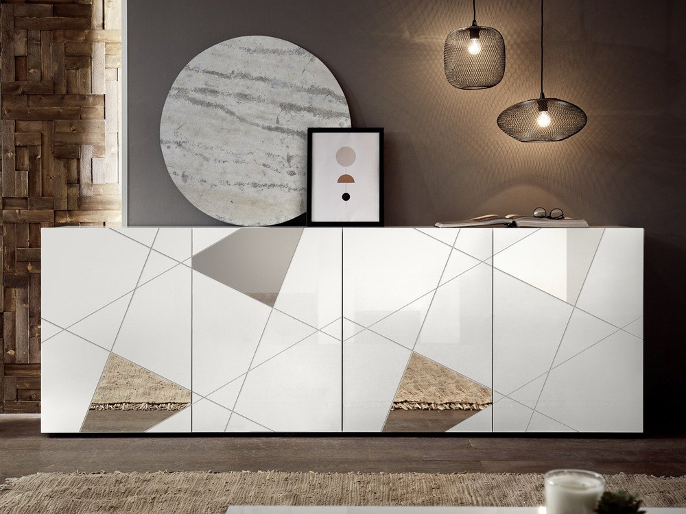 Bahut 4 portes Victoria laqué blanc brillant avec miroir
