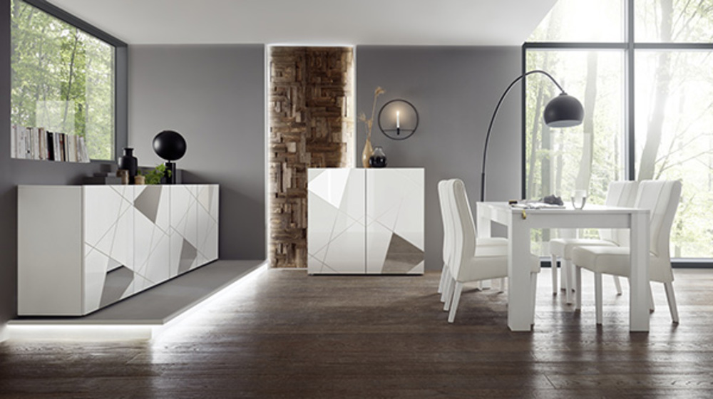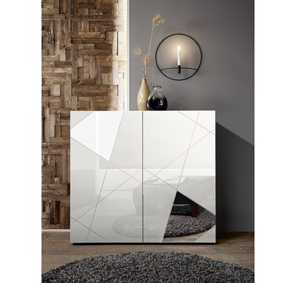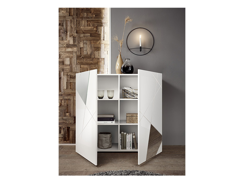 Meuble 2 portes Victoria laqué blanc brillant avec miroir