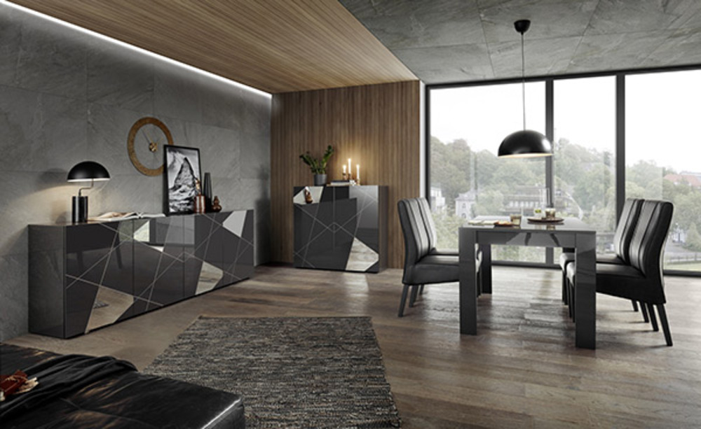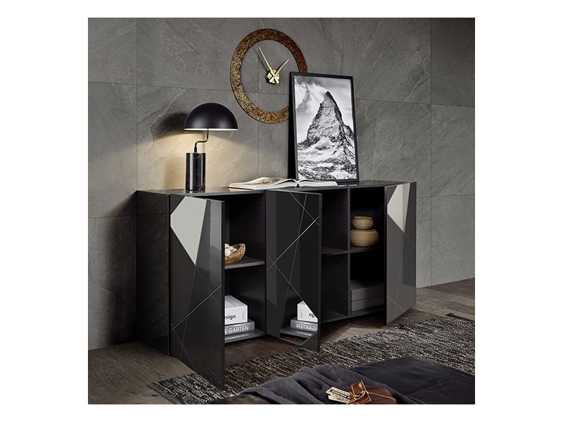 Bahut 3 portes Victoria laqué gris brillant miroir