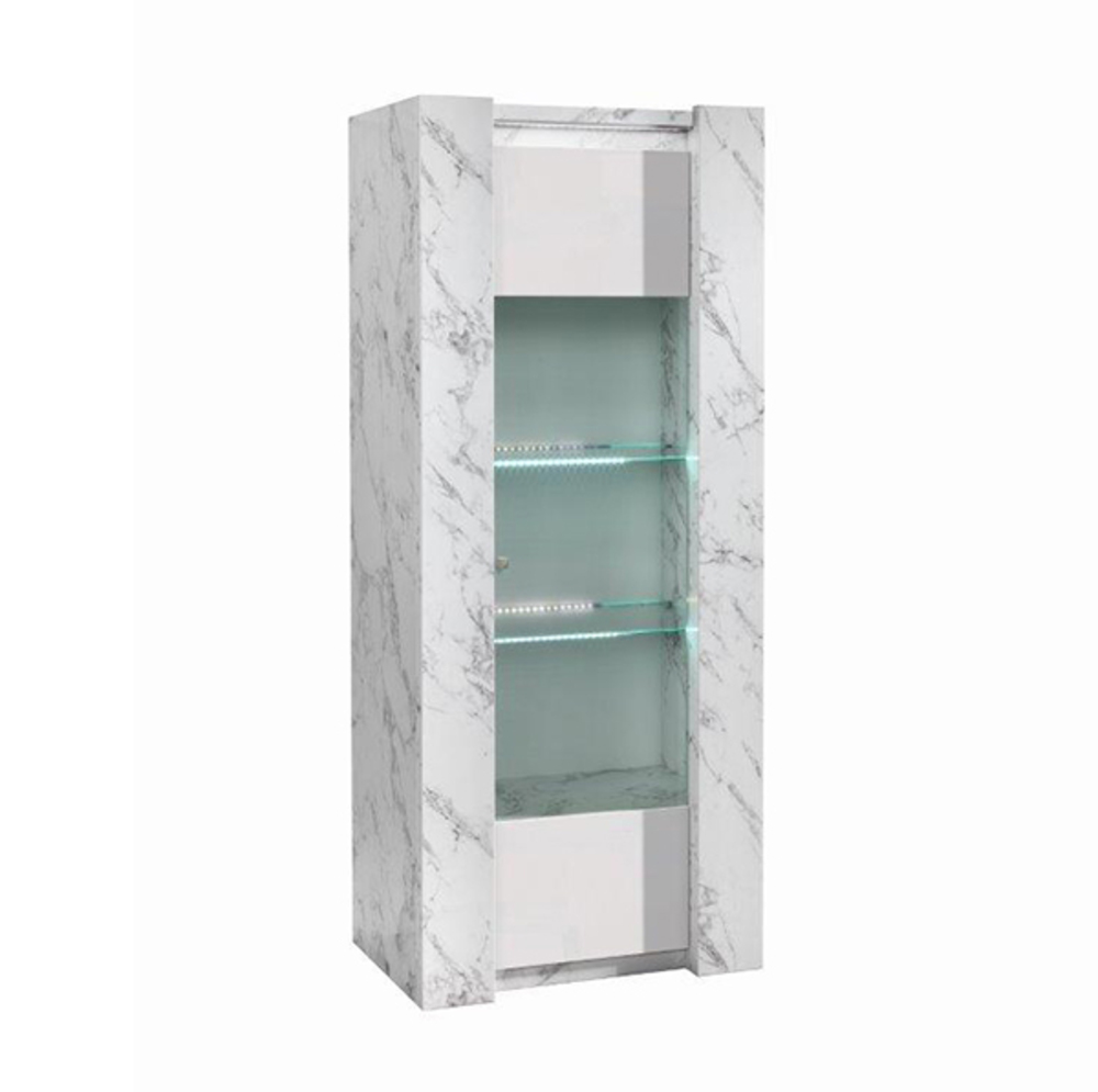 Vitrine 1 porte Clotilda marbré blanc/laqué blanc