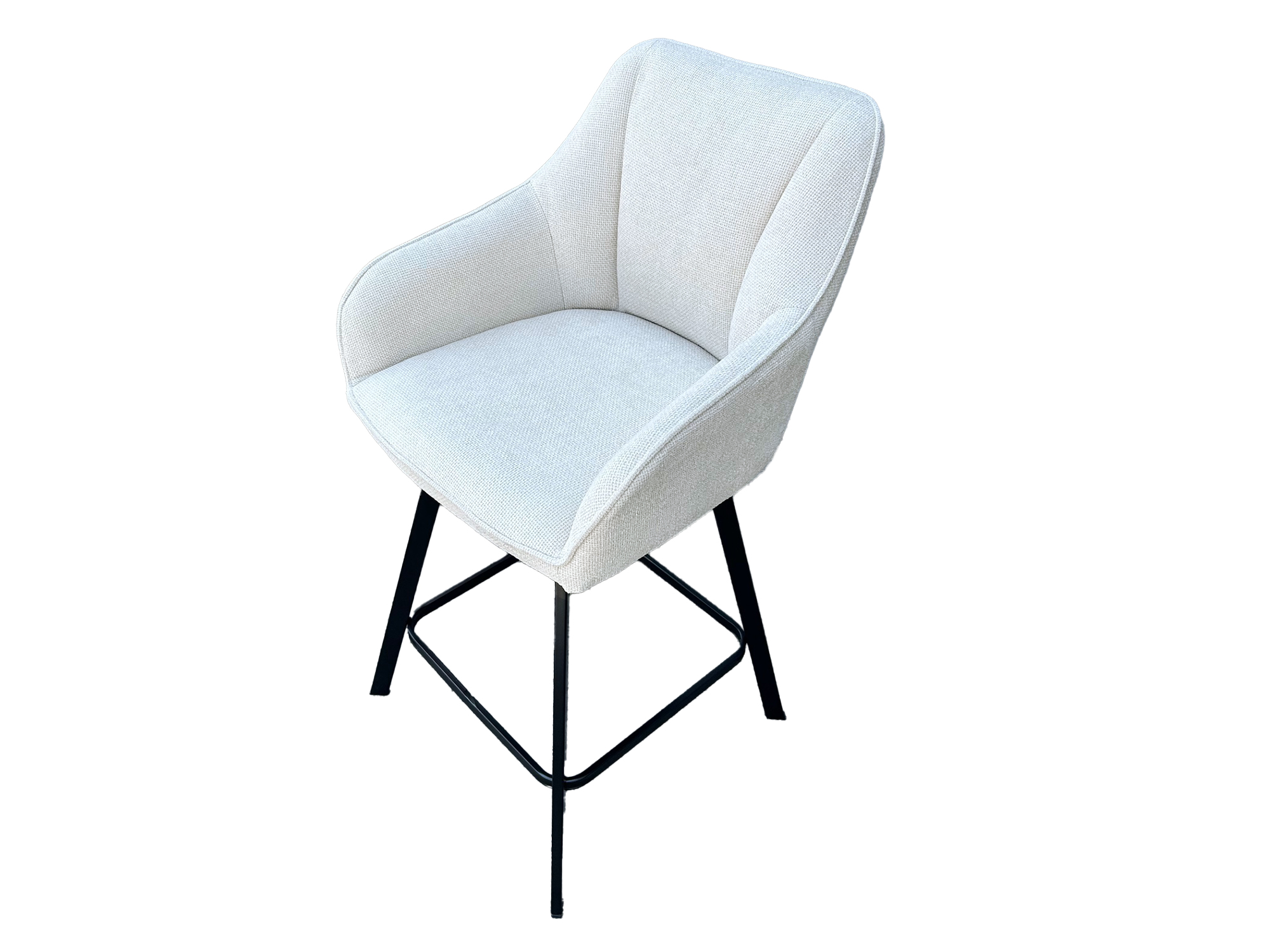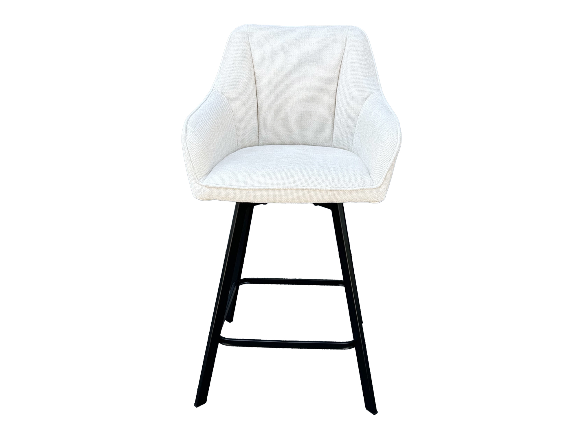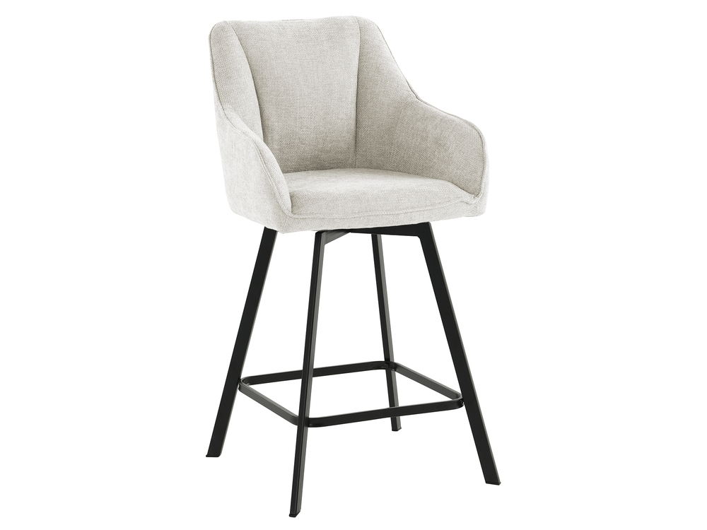 Tabouret de bar pivotant. Densité assise : 24kg/m3, densité dossier : 20kg/m3.