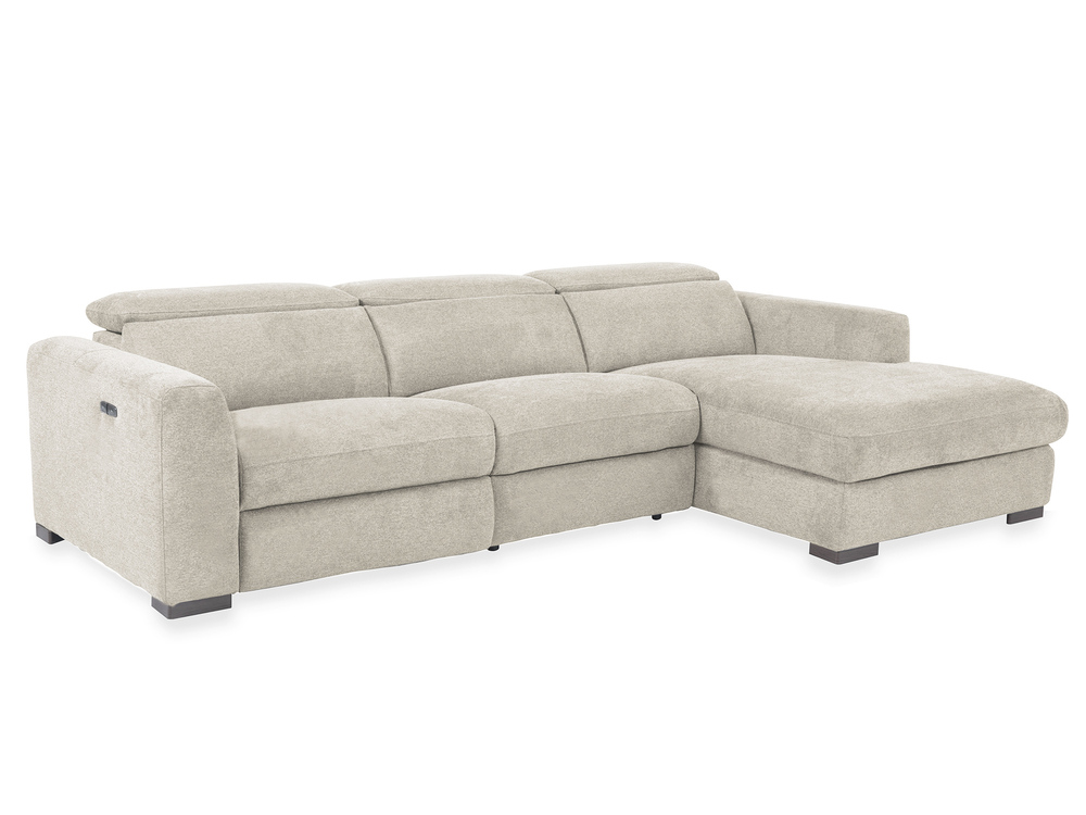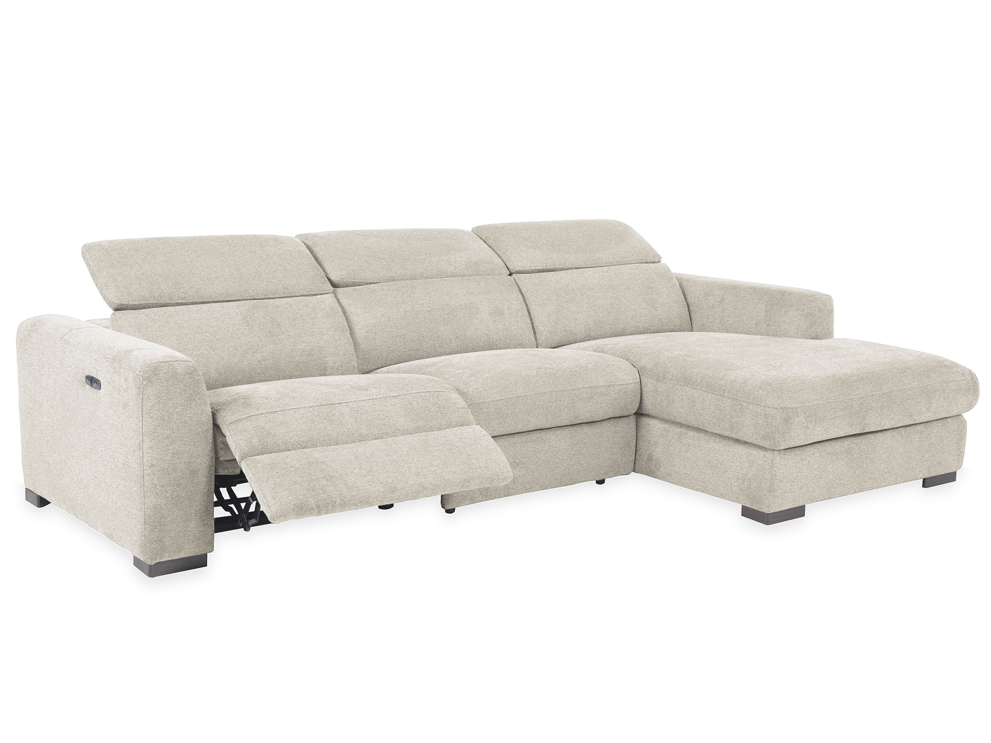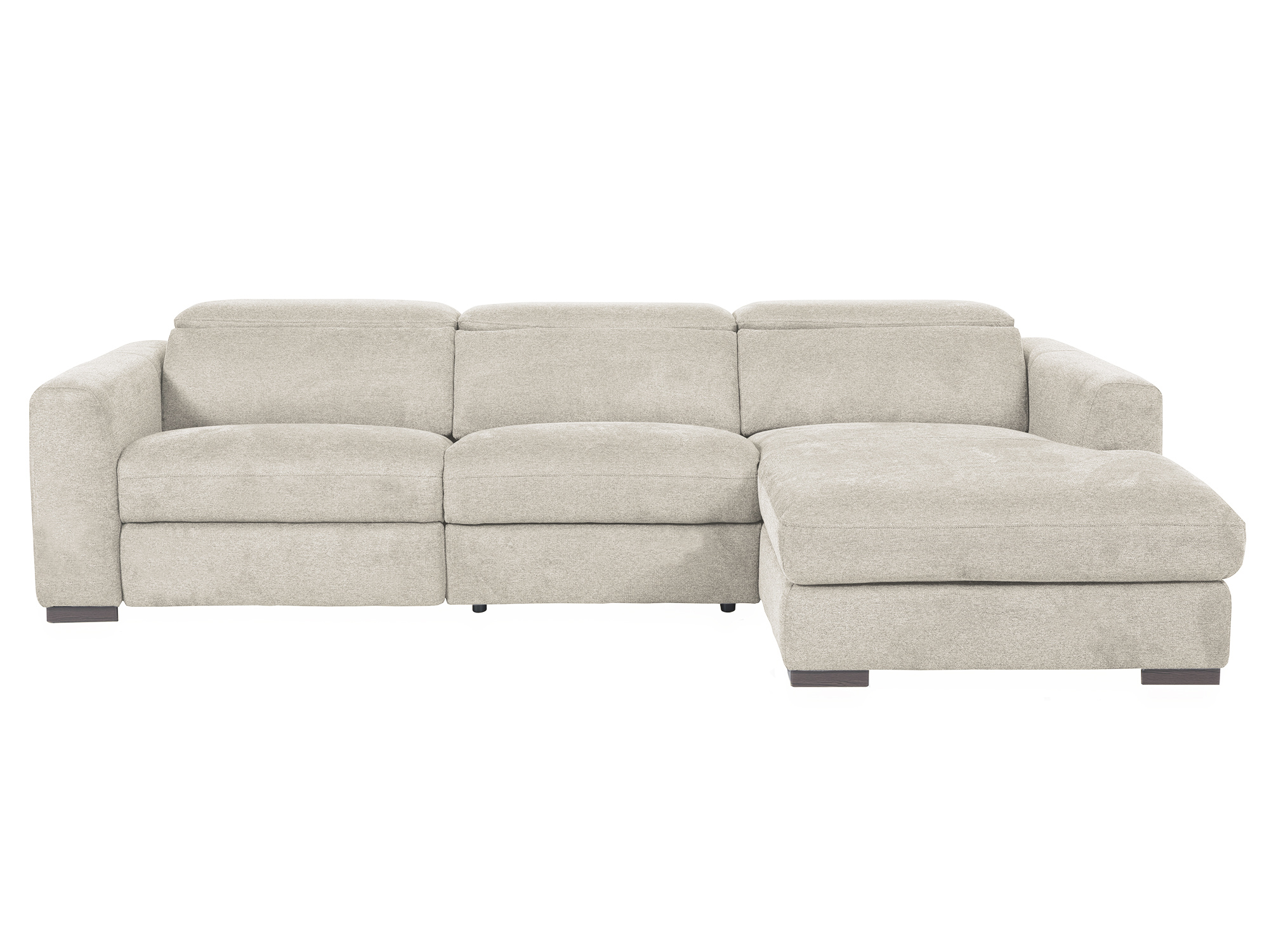 Canapé d'angle à droite avec 3 tétières réglables en hauteur.